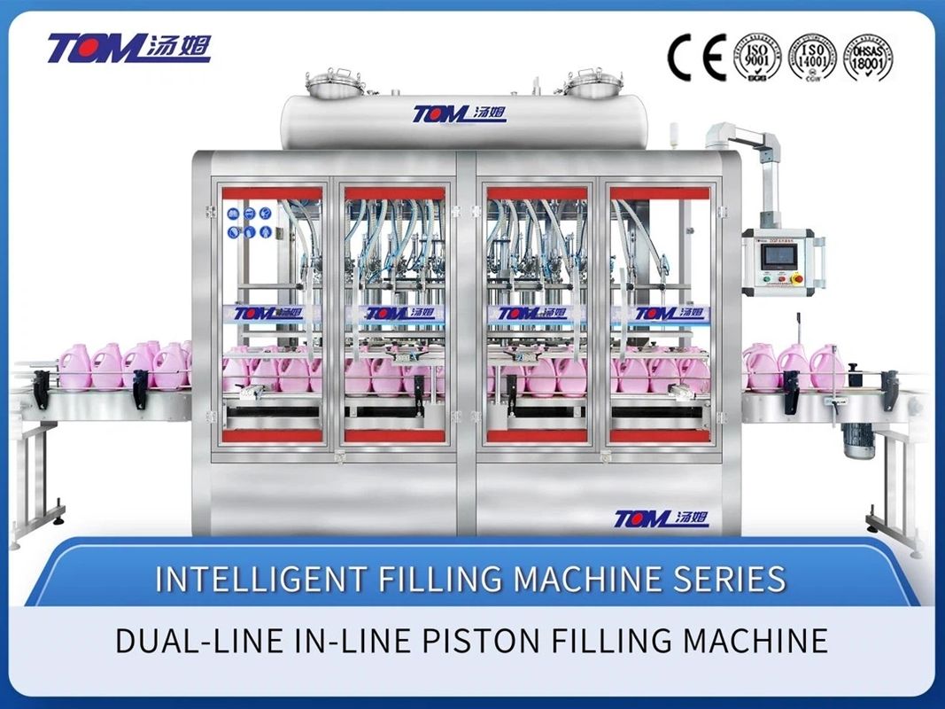 يستخدم خط التعبئة هذا بشكل أساسي لتعبئة زجاجات سائل الغسيل سعة 1 لتر - 5 لتر، وهو قابل للتطبيق على نطاق واسع في مصانع الكيماويات اليومية، ومصنعي المنظفات، ومصانع OEM.